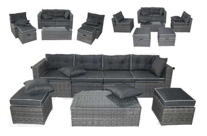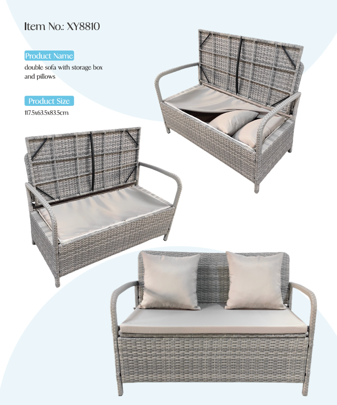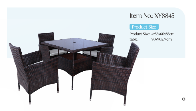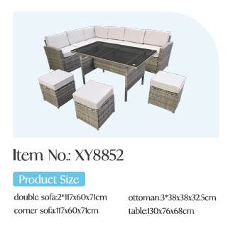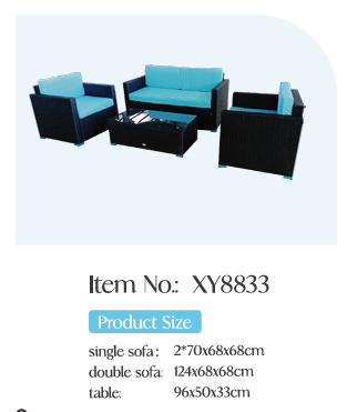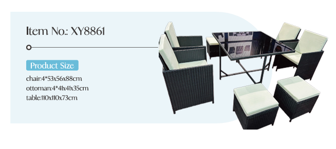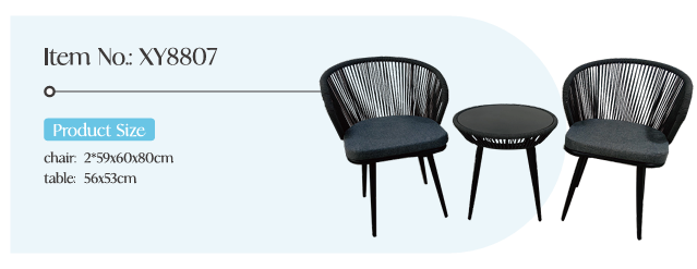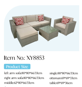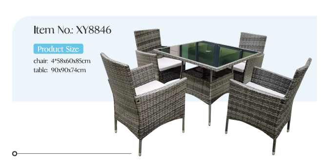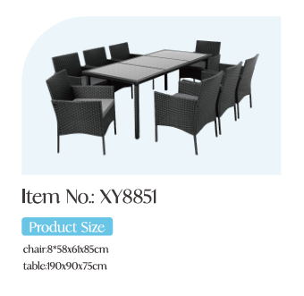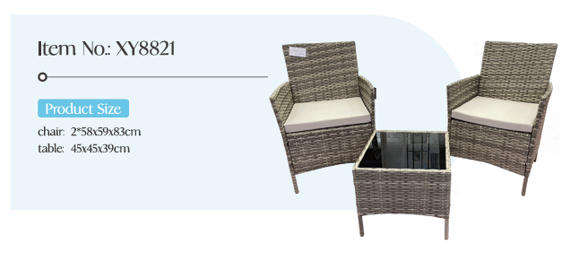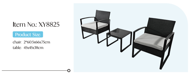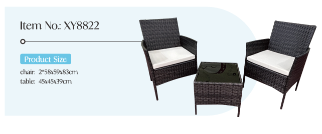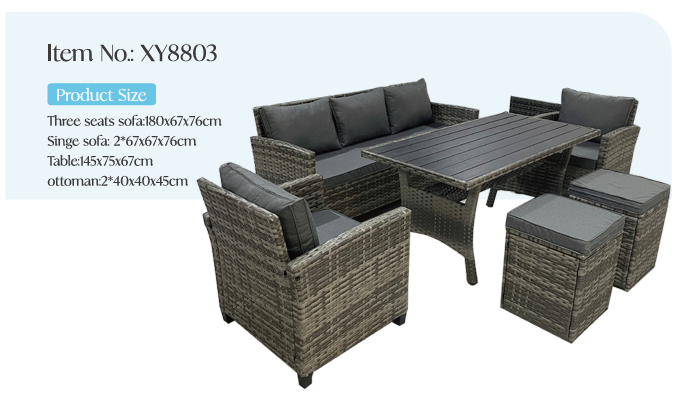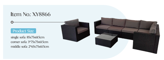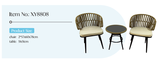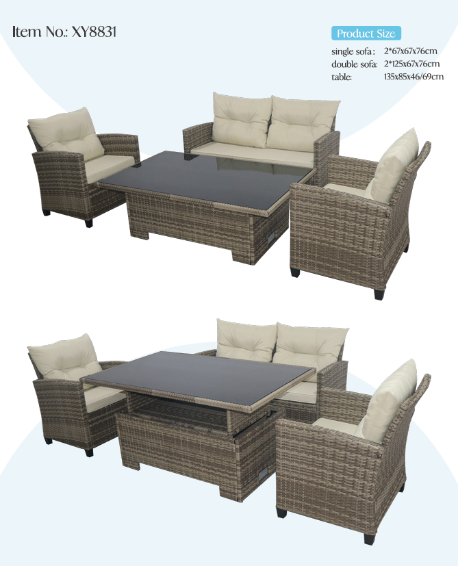 Our outdoor furniture products are mainly KD sofas, tables and chairs. These products use galvanized iron pipes with powder coating and are hand-woven with PE rattan.